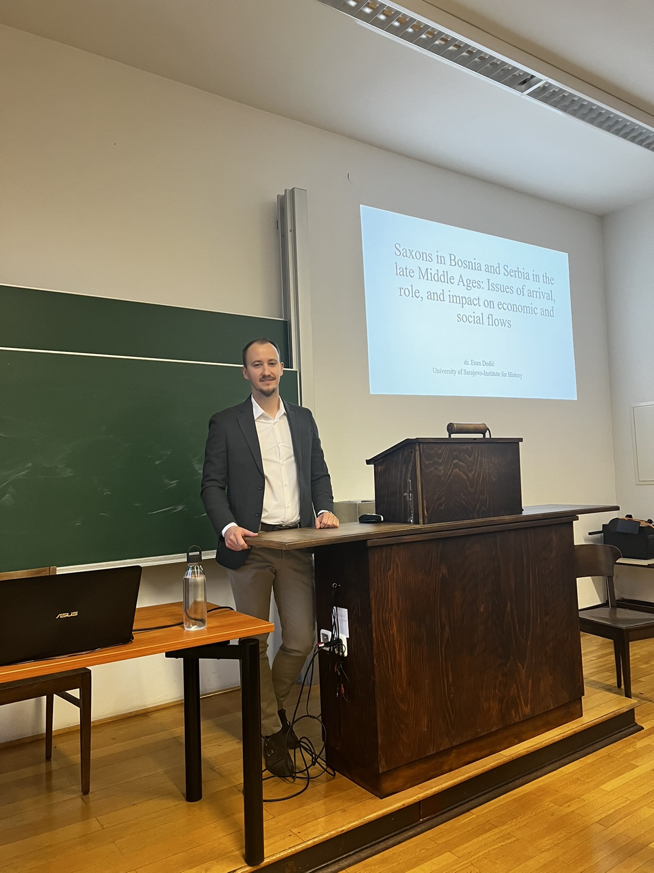 Tokom decembra 2022. i januara 2023. godine viši naučni saradnik Instituta za historiju Univerziteta u Sarajevu dr. Enes Dedić boravio je na istraživačkom projektu na Ruprecht Karls univerzitetu u Heidelbergu u Njemačkoj. Dr. Dedić je dobitnik stipendije Coimbra Group Universities za 2022. godinu u okviru koje je realizirao istraživački projekat pod naslovom Sasi (Saxons) in medieval Bosnia: The origin, arrival and integration of the Saxons into Bosnian medieval society. Tokom boravka u Heidelbergu dr. Dedić je bio član nastavno-naučnog tima kojeg predvodi prof. dr. Romedio Schmitz-Esser na Historijskom seminaru pri Centru za evropsku historiju i kulturne studije Univerziteta u Heidelbergu. Pored istraživačkog rada na vlastitom projektu dr. Dedić je u okviru projekta Großes Kolloquium der Mittelalterlichen Geschichte održao predavanje pod naslovom Saxons in Bosnia and Serbia in the late Middle Ages: Issues of arrival, role, and impact on economic and social flows. Također je učestvovao i u radionici Whose Middle Ages – and how many? The current state of Medieval Studies in international perspective.